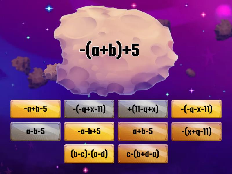 -a-b+5 - -(a+b)+5, a-b-5 - a-(b+5), a+b-5 - -(-a-b+5), -a+b-5 - -a+(b-5), -(-q+x-11) - -x+q+11, -(x+q-11) - 11-q-x, -(-q-x-11) - x+11+q, +(11-q+x) - x-q+11, c-(b+d-a) - a-b+c-d, (b-c)-(a-d) - b+d-a-c,
