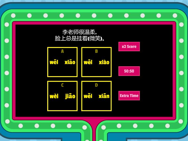 1) 李老师很温柔, 脸上总是挂着(微笑)。 a) wēi xiāo b) wēi xiào c) wèi jiāo d) wěi xiān 2) 不管遇到什么困难,我们都要(勇敢)面对。 a) yǒu hǎn b) yǎng gǎn c) yǒng gǎn d) yòng gāng 3) 吃完饭后,杰明(继续)做作业。 a) lì xù b) jì xù c) jí xùn d) lí xú 4) 看到妈妈走进来,____________________。 a) 他喜欢吃零食 b) 他假装闭眼睡觉 c) 他主动回答了问题 d) 他感谢妈妈做的午饭 5) ____________________,让我的心情好了很多。 a) 妈妈的微笑 b) 姐姐的批评 c) 妈妈的责骂 d) 奶奶离开了 6) ____________________,准备去野外游玩。 a) 他躺在床上 b) 他的脚受伤 c) 小丽戴着帽子 d) 她大声哭了起来 7) ____________________,需要大家一起合作。 a) 他已经完成作业 b) 这项任务不简单 c) 这本书太有趣了 d) 这件事不是我做的 8) ____________________,但我还是原谅他了。 a) 如果他不在家 b) 因为我生病了 c) 虽然他骗了我 d) 假如她犯错了 9) ____________________,他立刻回到课室。 a) 放学后 b) 休息时间 c) 电话响了 d) 上课铃声响了 10) ________我有翅膀,________可以飞到世界各地去游玩。 a) 假如……就 b) 不但……还 c) 虽然……但是 d) 或者……或者 11) 小安________去什么地方,________会随身带着一本书。 a) 一……就 b) 不管……都 c) 虽然……但是 d) 因为……所以 12) 假期的时候,我们________到图书馆看书,________去游泳馆游泳。 a) 不管……都 b) 只要……就 c) 或者……或者 d) 尽管……可是 13) 爸爸________接到电话,________赶紧去医院。 a) 一……就 b) 不是……而是 c) 只有……才 d) 不但……而且 14) 晚会上,大华________主持了节目,________演唱了一首歌曲。 a) 因为……所以 b) 不但……还 c) 无论……都 d) 虽然……但是 15) 妈妈________要上班,________要做家务,真辛苦啊! a) 既……又 b) 除了……都 c) 虽然……但是 d) 或者……或者