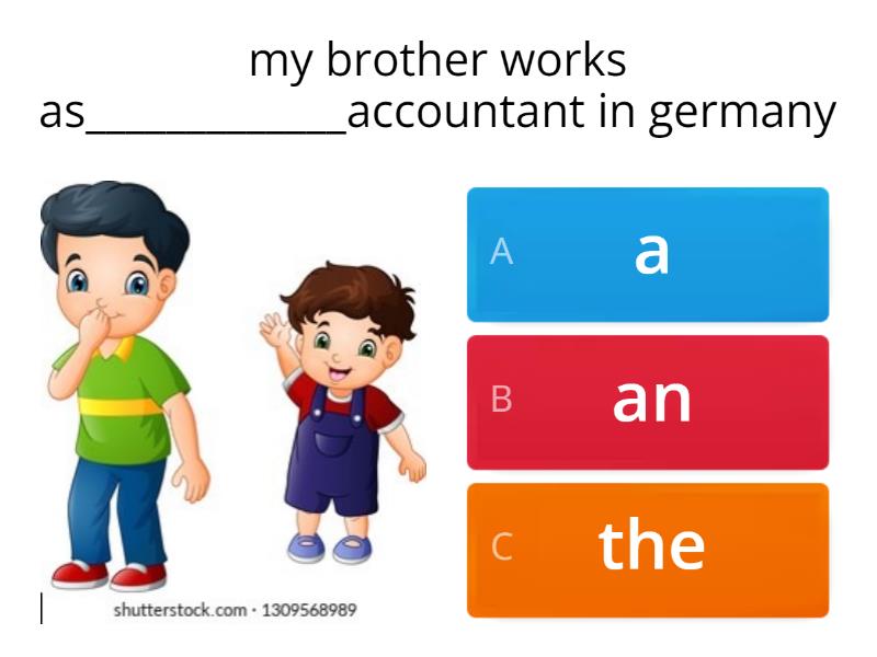 1) my brother works as_____________accountant in germany a) a b) an c) the 2) I bought _______________bouquet of yellow roses for my mother on mother "s day a) a b) an c) the