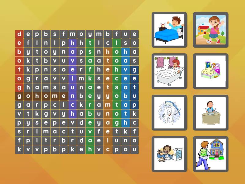 have breakfast, have lunch, go to bed, have a bath, go home, get up, clean my teeth, go to school,