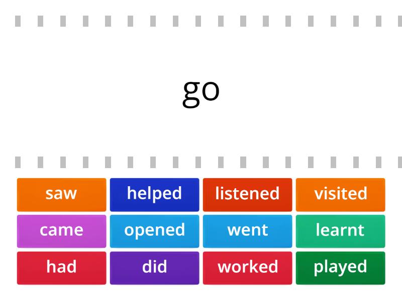 went - go, worked - work, saw - see, played - play, came - come, helped - help, learnt - learn, listened - listen, did - do, opened - open, had - have, visited - visit,