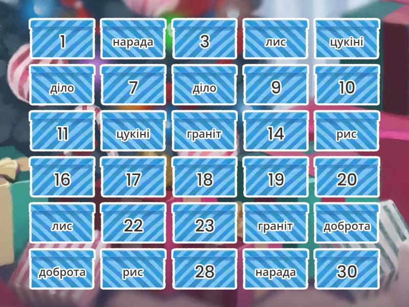 лис, рис, нарада, діло, граніт, доброта, цукіні, автопілот, гуркіт, відео, зубр, трембіта, доля, булька, жовток,