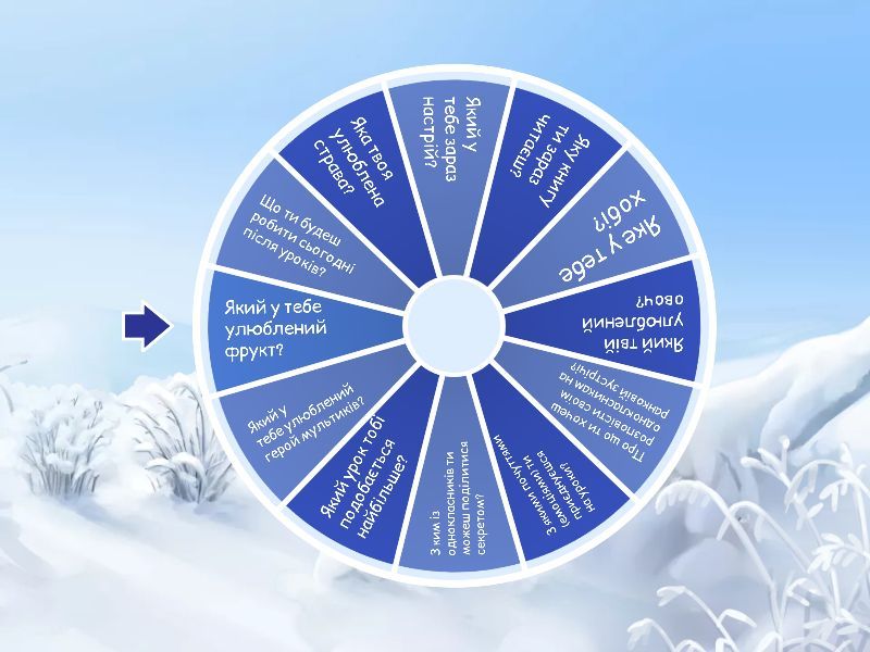 1) Що ти будеш робити сьогодні після уроків? 2) Яка твоя улюблена страва? 3) Який у тебе зараз настрій? 4) Яку книгу ти зараз читаєш? 5) Яке у тебе хобі? 6) Який твій улюблений овоч? 7) Про що ти хочеш розповісти своїм однокласникам на ранковій зустрічі? 8) З якими почуттями (емоціями) ти приєднуєшся на уроки? 9) З ким із однокласників ти можеш поділитися секретом? 10) Який урок тобі подобається найбільше? 11) Який у тебе улюблений герой мультиків? 12) Який у тебе улюблений фрукт?