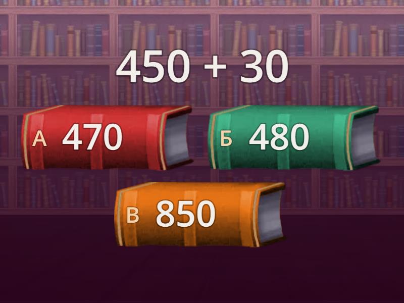1) 450 + 30 a) 470 b) 480 c) 850 2) 620 - 200 a) 420 b) 220 c) 400 3) 560 + 300 a) 260 b) 760 c) 860 4) 390 - 50 a) 340 b) 350 c) 440 5) 460 + 20 a) 440 b) 480 c) 500 6) 730 - 200 a) 530 b) 930 c) 710 7) 990 - 890 a) 190 b) 10 c) 100 8) 185 + 200 a) 485 b) 300 c) 385
