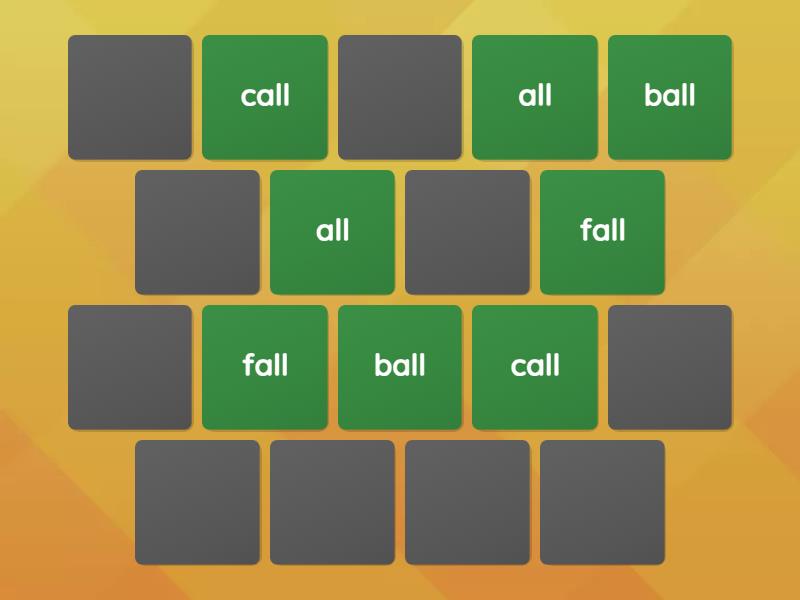 all, call, ball, fall, hall, tall, stall, small, mall,
