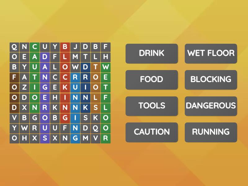 CAUTION - CAUTION, DANGEROUS - DANGEROUS, BLOCKING - BLOCKING, RUNNING - RUNNING, FOOD - FOOD, DRINK - DRINK, TOOLS - TOOLS, WET FLOOR - WET FLOOR,