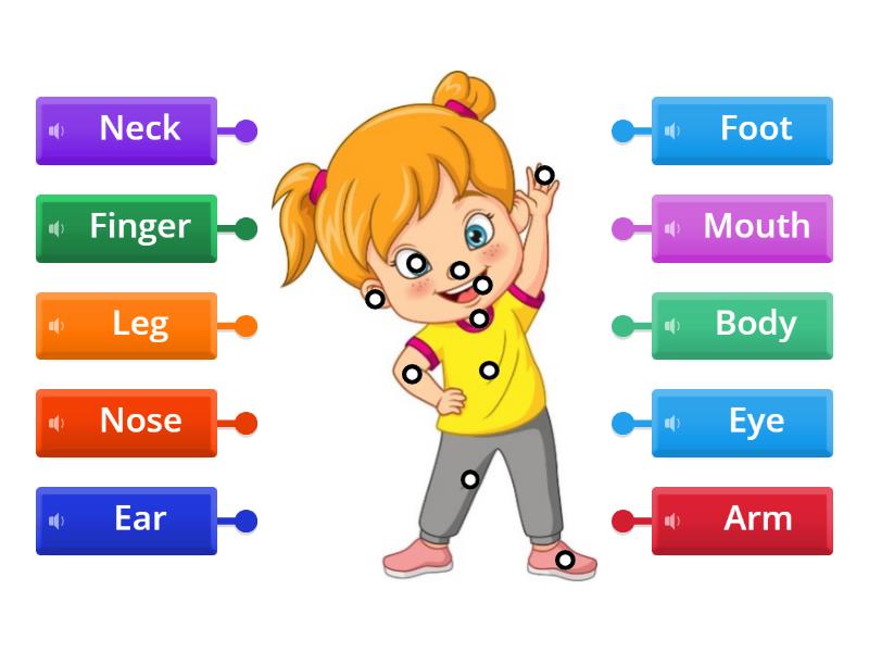 Eye, Arm, Leg, Finger, Mouth, Ear, Body, Nose, Neck, Foot.