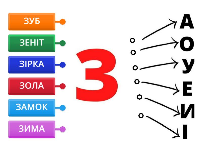 ЗАМОК, ЗОЛА, ЗУБ, ЗЕНІТ, ЗИМА, ЗІРКА.