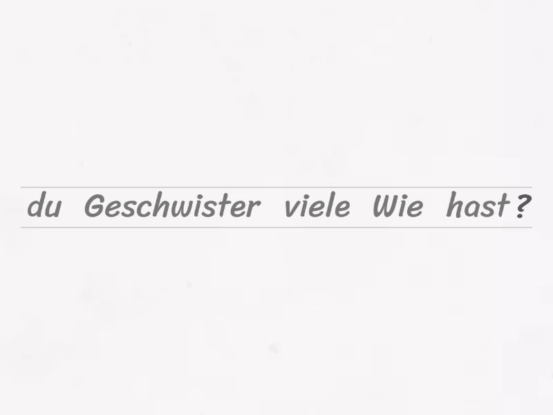 Wie viele Geschwister hast du?, Hörst du gerne klassische Musik?, Hast du ein Haustier?, Hast du eine Großmutter über 75?, Wie alt bist du?, Wo wohnst du?, Welche Hobbys hast du?, Wie geht es dir?, Wie heißt du?, Wie viele Leute sind in deiner Klasse?,