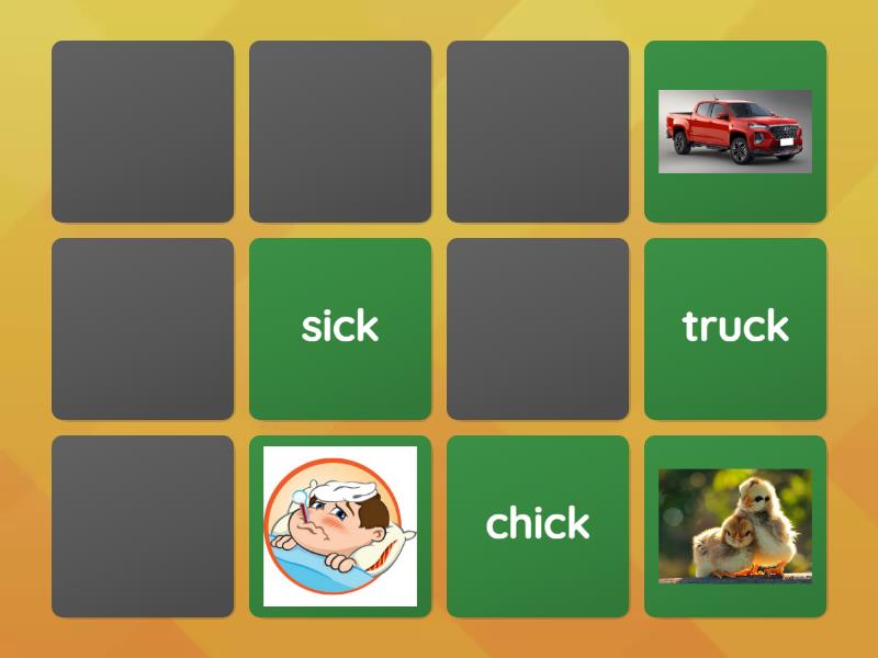 sick, truck, chick , lock, crack, neck,