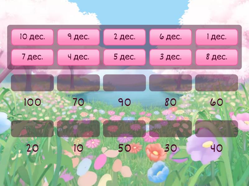 1 дес. - 10, 2 дес. - 20, 3 дес. - 30, 4 дес. - 40, 5 дес. - 50, 6 дес. - 60, 7 дес. - 70, 8 дес. - 80, 9 дес. - 90, 10 дес. - 100,