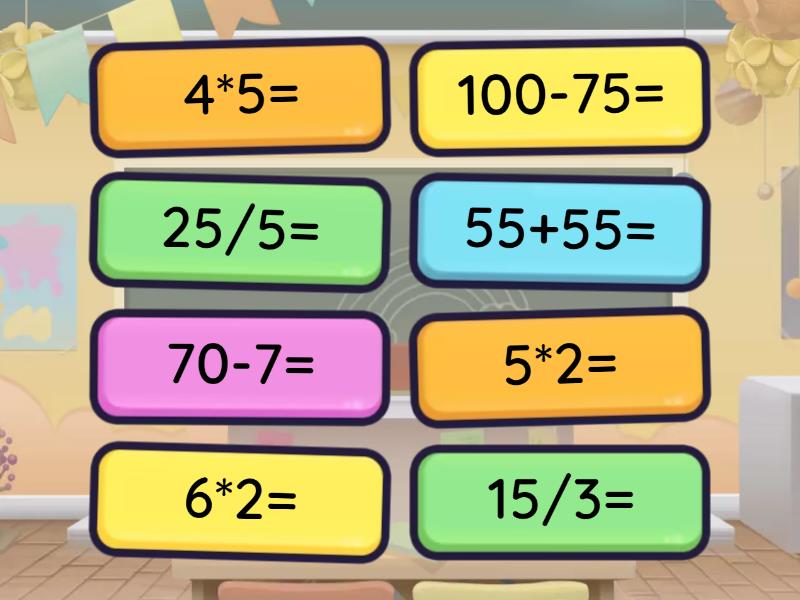 5*2= - 10, 55+55= - 110, 15/3= - 5, 70-7= - 63, 4*5= - 20, 25/5= - 5, 100-75= - 25, 6*2= - 12,