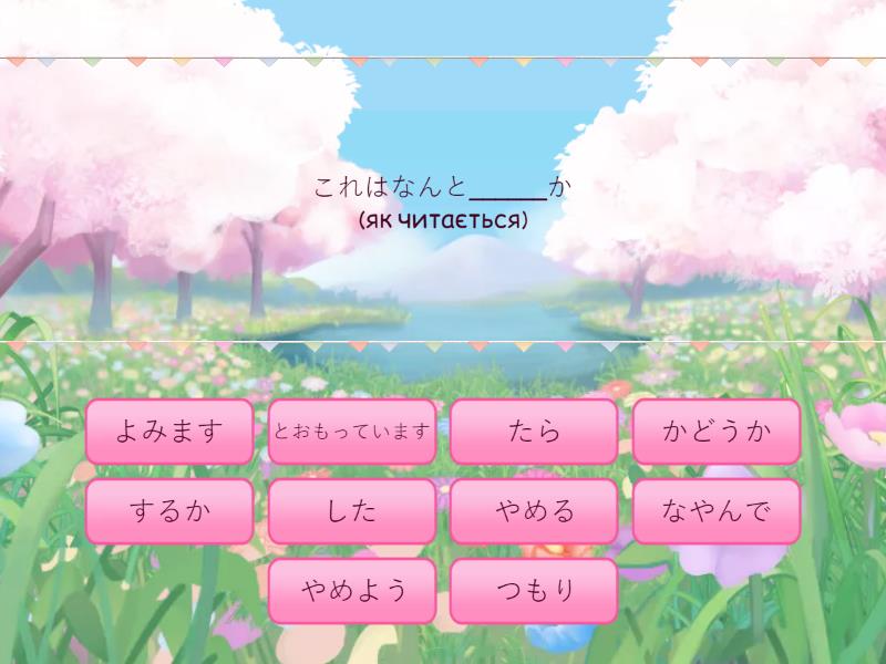 よみます - これはなんと______か (як читається), つもり - しょうらい、アメリカに行く_____です, とおもっています - じゅぎょうのあと、タンスクラスに行こう_______, かどうか - あした、あめがふる_______しらない, するか - しょうらい、何を_____, まよっています, たら - じゅぎょうがおわっ____、せつめいかいに行きます, やめる - なつやすみ、タバコをすうのを_____つもりです, やめよう - さいきん、仕事を______と思っています, した - 先生にそうだん_____ら、どうしますか?, なやんで - どうするか____います,