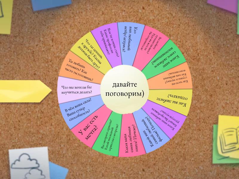 1) Ты любишь готовить? Как часто ты готовишь? 2) Что ты ценишь в дружбе? Каким должен быть друг? 3) Кем ты хочешь стать? Какие профессии тебя привлекают? 4) Кто ваш любимый актёр/актриса?  5) Вы любите путешествовать? Куда вы хотели бы отправиться? 6) Какое ваше самое любимое воспоминание? 7) Как часто вы слушаете музыку? Кто ваш любимый исполнитель? 8) Как вы любите отдыхать? 9) Какое ваше любимое блюдо? Вы пробовали русскую кухню? 10) Какой ваш самый любимый фильм? Почему? 11) Какая ваша самая любимая книга? Почему? 12) Вы смотрите сериалы? Какой последний сериал вы смотрели? 13) У вас есть мечта? 14) В чём ваша сила? Ваша супер способность? 15) Что вы хотели бы научиться делать?
