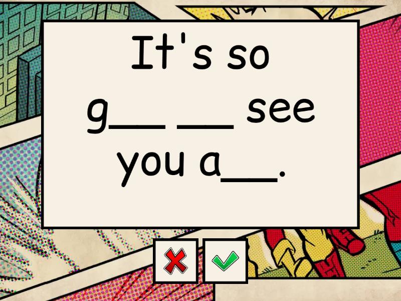 It's so g__ __ see you a__. - It's so good to see you again., __ too! - You too!, How d__ you __? - How do you do?, It's a p__ to __ you. - It's a pleasure to meet you., How's e__? - How's everything?, E__'s great. - Everything's great., How are you d__? - How are you doing?, I'm d__ well. - I'm doing well., Not __ bad. - Not too bad., H__ are you t__? - How are you today?, How are t__? - How are things?, H__ are t__ at work? - How are things at work?, What d__ you __? / I'm an e__. - What do you do? / I'm an editor., Let's c__ u__ over coffee. - Let's catch up over coffee., __ you a student __ t__? - Are you a student here, too?, I __ here __ study English. - I am here to study English., __ is __ friend Sandy. - This is my friend Sandy., __ we in the __ class? - Are we in the same class?, We __ g__ friends. - We are good friends., They __ both f__ Singapore. - They are both from Singapore., I'm __ Taiwain. H__ __ you? - I'm from Taiwan. How about you?, W__ are you two f__? - Where are you two from?,
