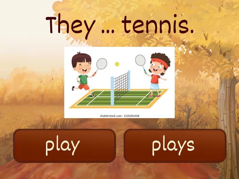 1) They ... tennis. a) play b) plays 2) It ... fast. a) run b) runs 3) I ... in winter. a) skate b) skates 4) He ... well. a) swim b) swims 5) It ... of sadness. a) cry b) cries 6) She ... Russian. a) speaks b) speak 7) She ... TV. a) watch b) watches 8) She ... her room. a) tidy b) tidies 9) We ... at the cinema. a) work b) works 10) I ... ice cream. a) like b) likes 11) She... coke. a) Drink b) Drinks 12) He ..... at the party. a) Dance b) Dances 13) We... at McDonalds. a) visit b) visits 14) It... in autumn. a) rain b) rains 15) You...pizza. a) like b) likes