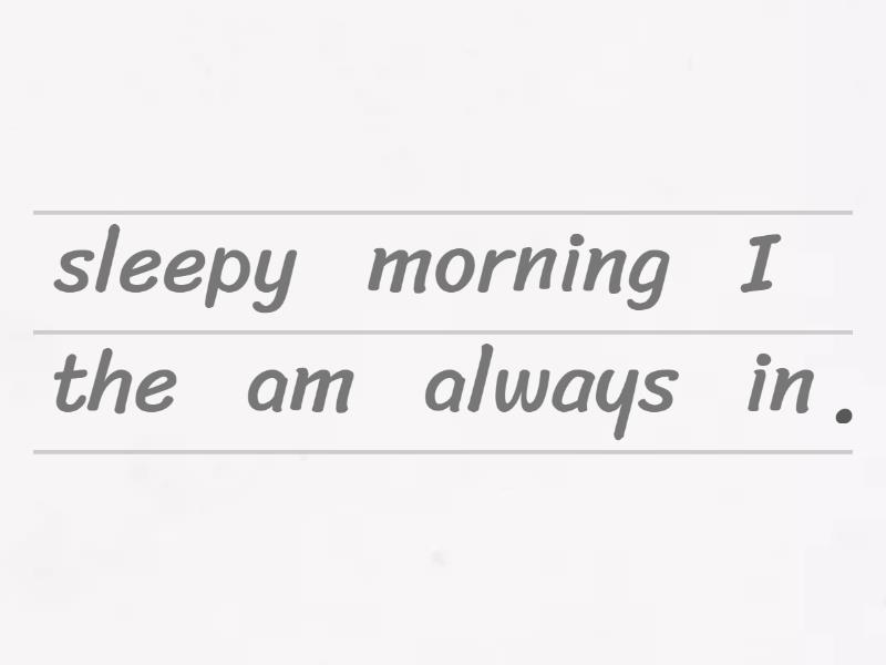 I am always sleepy in the morning., He is usually tired in the evening., We are sometimes funnny., They are never hungry in the morning., I always get up early., He usually goes to school by car., We sometimes eat junk food., They never drink coffee., They are never angry., They sometimes wear capes., I sometimes make my bed., I am never sad., I am always hungry., I never fight with my best friend.,