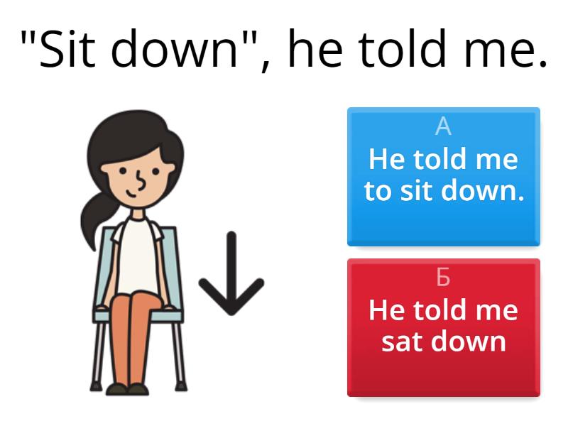 1) "Sit down", he told me. a) He told me to sit down. b) He told me sat down 2) "Please stop running", she asked me. a) She asked me to stop running. b) She asked me stop running 3) "Be quiet, please", they told me. a) They told me be quiet. b) They asked me to be quiet. 4) "Please give me your pencil", Ania asked me. a) Ania asked me to give her my pencil. b) Ania told me to give her my pencil. c) Ania asked me to give me her pencil. 5) The policeman said to Tim "Show me your driving licence!" a) The policeman told Tim to show me your driving licence. b) The policeman ordered Tim to show him his driving licence. c) The policeman invited Tim show him his driving licence. 6) Father said to his son "Close the door, please!" a) Father asked his son to close the door. b) Father tells his son to close the door. c) Father asked his son closed the door.