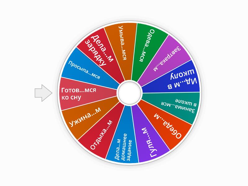 1) Просыпа...мся 2) Дела...м зарядку 3) Умыва...мся 4) Одева...мся 5) Завтрака...м 6) Ид...м в школу 7) Занима...мся в школе 8) Обеда...м 9) Гуля...м 10) Дела...м домашнее задание 11) Отдыха...м 12) Ужина...м 13) Готов...мся ко сну