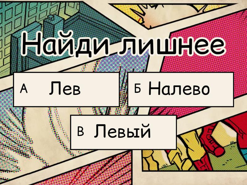 1) Найди лишнее a) Левый b) Лев c) Налево