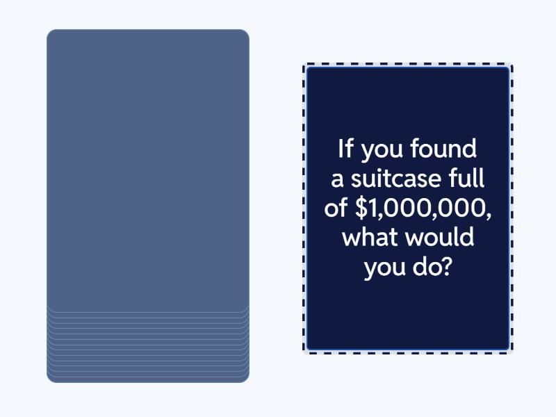 If you had only 24 hours to live, what would you do?, If someone's underwear was showing, would you tell them?, If one song was to describe your life, what song would it be?, If you bumped your car into another car, but nobody saw you do it, would you leave your name and address?, If you could be a plant, what plant would you choose to be and why?, If you could be a super hero, which super hero would you be?, If you could be another person for a day, who would you be?, If you could be invisible for a day what would you do and why?, If you could change one thing about your partner, what would it be?, If you could change one thing about yourself, what would it be?, If you could date a celebrity, who would you choose?, If you found a suitcase full of $1,000,000, what would you do?, If you had time machine, where would you go and why?, If you were given three wishes, what would you wish for?, If you were the leader of your country, what would you change?.