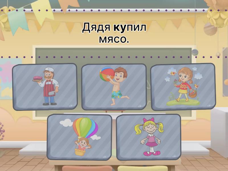 Дядя купил мясо., У Любы юбка., Лена летит на шаре., Ваня ловит мяч., Лера гуляет в лесу.,