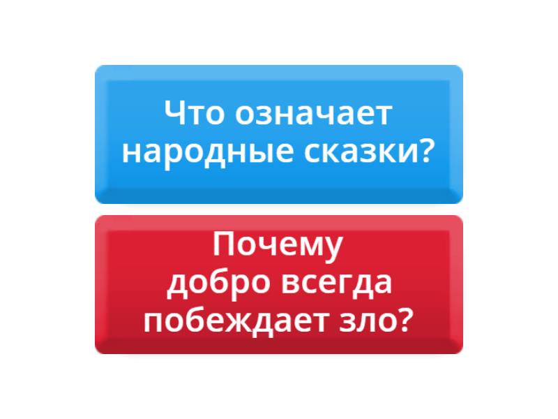 Почему добро всегда побеждает зло? - Потому что добро, благо, было в самом начале, а зло творят люди., Что означает народные сказки? - Эпический жанр фольклора: прозаический устный рассказ о вымышленных событиях в фольклоре разных народов.,