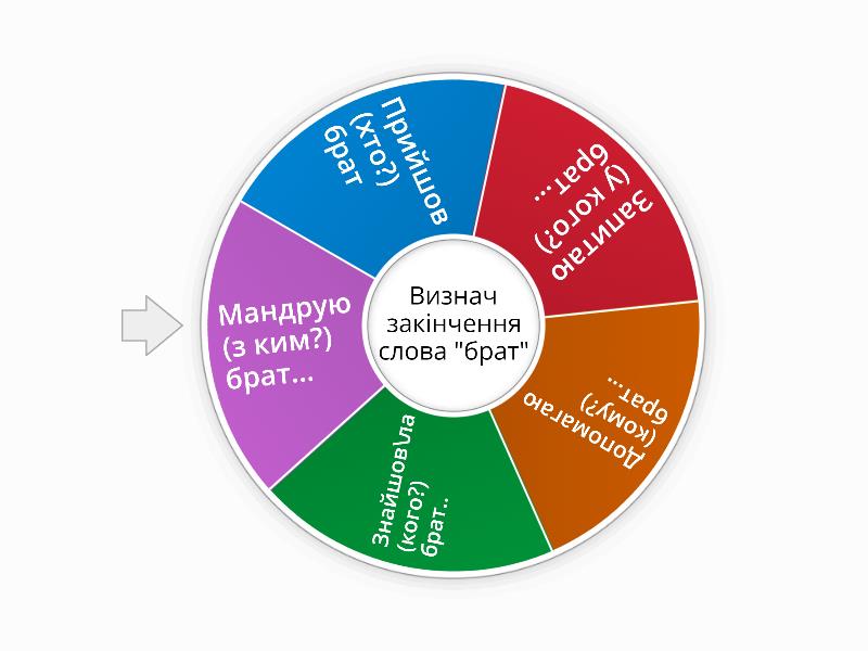 1) Прийшов (хто?) брат 2) Запитаю (у кого?) брат... 3) Допомагаю (кому?) брат... 4) Знайшов\ла (кого?) брат.. 5) Мандрую (з ким?) брат...