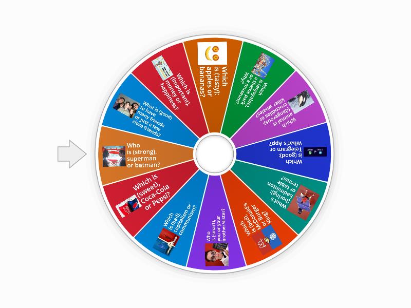1) What is (good) to have many friends or just a few close friends? 2) Which is (important), money or happiness? 3) Which is (tasty): apples or bananas?  4) Which is (enjoyable), a theme park or a museum? Why? 5) Which animal is (dangerous): crocodiles or killer whales? 6) Which is (good): Telegram or What's App? 7) What's (boring): badminton or table tennis? 8) Which is (bad), McDonald's or Burger King? 9) Who is (smart), you or your brother/sister? 10) Which is (bad), capitalism or communism? 11) Which is (sweet), Coca-Cola or Pepsi? 12) Who is (strong), superman or batman?