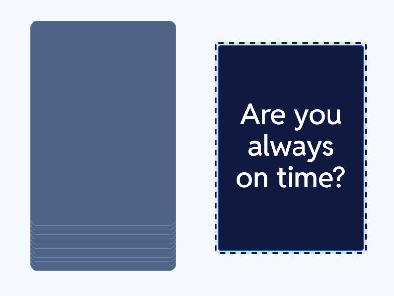 Do you want to live in another country?, Do you like meeting new people?, Are you easy to get on with?, Do you like learning grammar?, Do you spend a lot of time on social media?, Do you like going to parties?, Are traditions important for you?, Are you optimistic about the future?, Do you like getting up early?, Are you always on time?, Do you like to plan things?, Do you get enough sleep?.