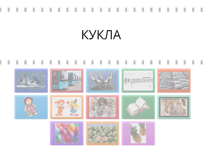 КУКЛА, КУКЛЫ, КЛОУНЫ, КНИГА, АНАНАСЫ, КИТЫ, КОТЫ, МАШИНЫ, ШАРЫ, АИСТЫ, АВТОБУСЫ, АРБУЗЫ, НОТЫ,
