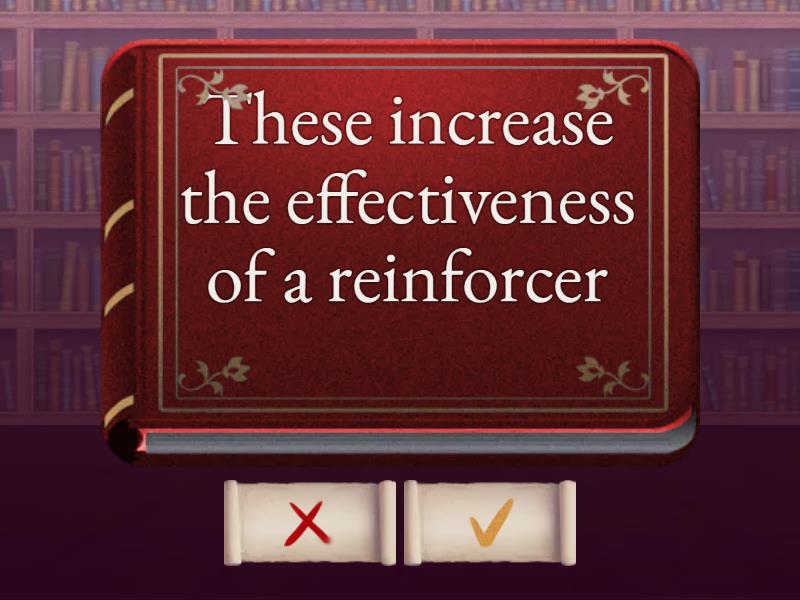 Functions of behavior (SEAT) - sensory, escape, attention, tangible, These temporarily increase or decrease the value of something - Motivating Operations (MOs), Motivating operations are further broken down into two categories - Establishing and Abolishing, These increase the effectiveness of a reinforcer - Establishing Operation (EO), Theses decrease the effectiveness of a reinforcer - Abolishing Operation (AO), Deprivation is to __________ and satiation is to ________ (motivating operations) - establishing operation, abolishing operation, A behavior reduction process that consists of withholding reinforcement for behaviors that were reinforced in the past - Extinction, _________ is a stimulus that, when presented, lets a learner know that reinforcement is available - Discriminative Stimulus (SD), Reinforcement is provided for all behaviors other than the target behavior - Differential reinforcement of other behaviors (DRO), Reinforcement is provided for a specified alternative behavior while withholding reinforcement for the target behavior - Differential reinforcement of alternative behaviors (DRA), What is the purpose of a behavior reduction plan? - To provide strategies for modifying a target behavior, a strategy used to reduce the likelihood of a behavior - Antecedent manipulation/intervention, A _____ ______ outlines pertinent information and procedures to follow in emergency situations - Crisis plan, A behavior reduction plan should have these six components - 1. Behaviors targeted for reduction 2. Who executes the plan 3. The behavior's function 4. Preventative strategies 5. Consequent strategies 6. Crisis interventions , Presenting easy tasks before more challenging ones to increase compliance. - High-probability sequence (high-p), Providing rewards regardless of behavior to promote positive interactions. - Non-contingent reinforcement (NCR),