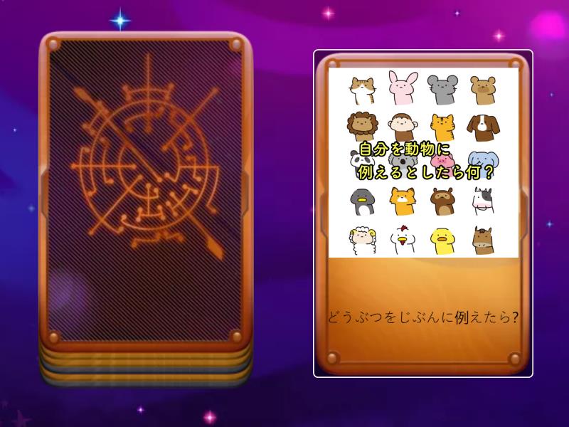 : どうぶつをじぶんに例えたら?, 無人島へ持っていくのはなに, 家族は何人ですか⁉️だれが一番好きですks, 将来の夢は?, 10年後の自分は⁉️, 最近うれしかったことは?, 尊敬する方は?,
