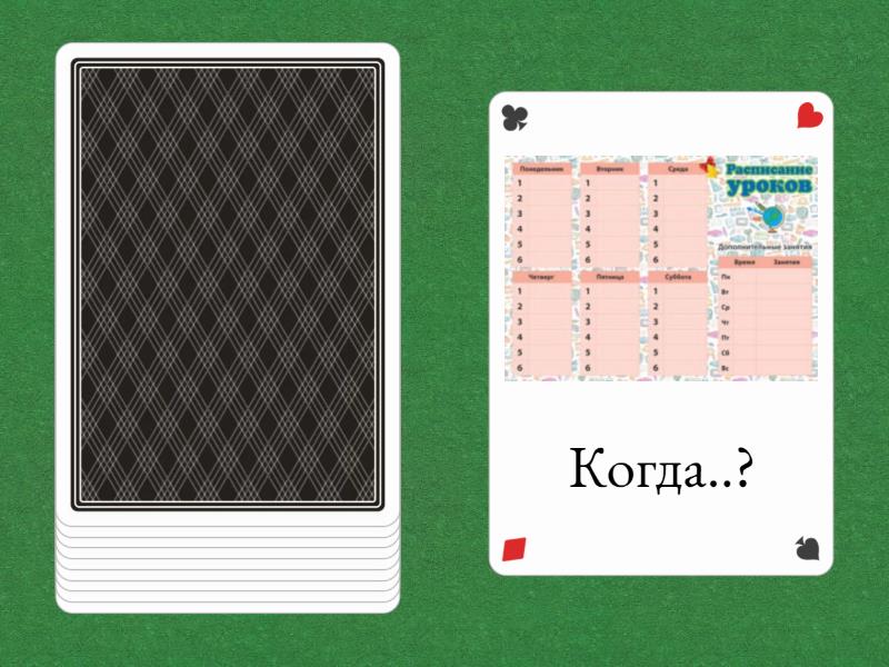 : Кто...?, Где..?, Куда..?, Что..?, Кого..?, Когда..?, Во сколько..?, Какой урок...?, Какая погода...?, Какой день...?,
