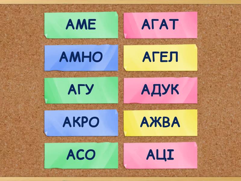 АЦІ, АСО, АМЕ, АГУ, АГАТ, АКРО, АГЕЛ, АМНО, АЖВА, АДУК,