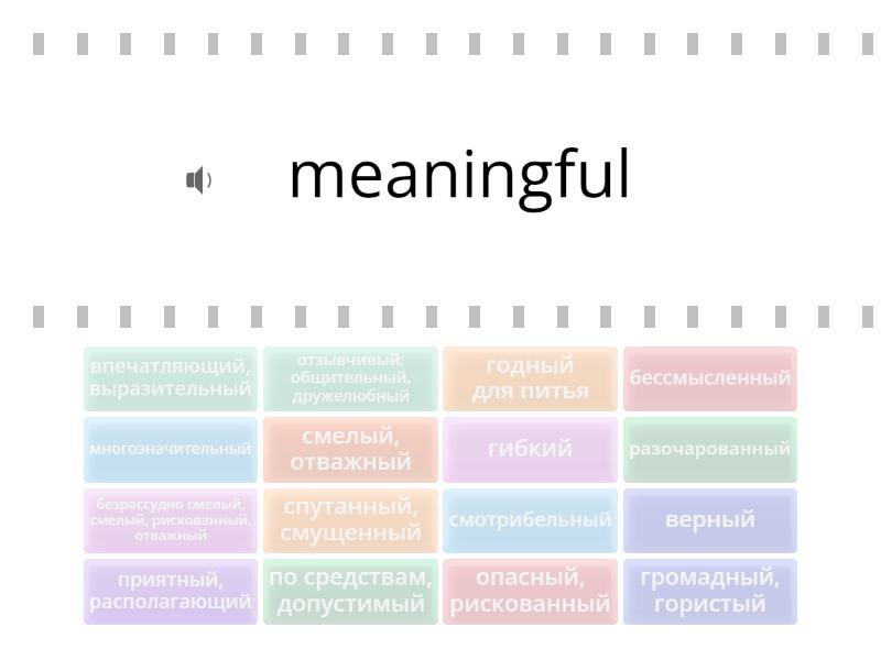 многозначительный - meaningful, бессмысленный - meaningless, годный для питья - drinkable, по средствам, допустимый - affordable, безрассудно смелый, смелый, рискованный, отважный - adventurous, громадный, гористый - mountainous, впечатляющий, выразительный - impressive, смелый, отважный - courageous, приятный, располагающий - likable, смотрибельный - watchable, опасный, рискованный - hazardous , спутанный, смущенный - confused, разочарованный - disappointed, гибкий - flexible, верный - loyal, отзывчивый; общительный, дружелюбный - outgoing,