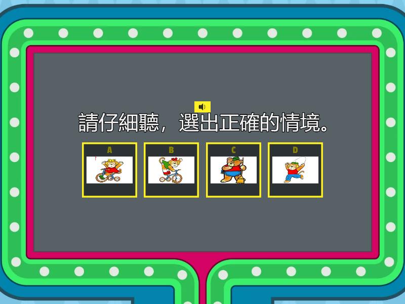 1) 請仔細聽,選出正確的情境。 a) b) c) d) 2) 請仔細聽,選出正確的情境。 a) b) c) d) 3) 請仔細聽,選出正確的情境。 a) b) c) d) 4) 請仔細聽,選出正確的情境。 a) b) c) d) 5) 請仔細聽,選出正確的情境。 a) b) c) d) 6) 請仔細聽,選出正確的情境。 a) b) c) d) 7) 請仔細聽,選出正確的情境。 a) b) c) d) 8) 請仔細聽,選出正確的情境。 a) b) c) d)