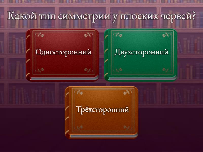 1) Какой тип симметрии у плоских червей?  a) Односторонний  b) Двухсторонний c) Трёхсторонний  2) Эктодерма, энтодерма и мезодерма-это что такое?  a) Слои клеток  b) Вакуоли клеток  c) Пищеварительные системы 3) Какая пищеварительная система у плоских червей?  a) Замкнутая  b) Незамкнутая  c) Сквозная  d) Отсутствует 4) Есть ли у плоских червей глотка и рот?  a) Есть  b) Нет 5) Какой тип нервной системы показан на рисунке?  a) Лестничный тип  b) Диффузный тип  c) Трубчатый тип 6) Какая пищеварительная система у круглых червей? a) Замкнутая  b) Незамкнутая c) Сквозная 7) Верно ли утверждение? Газообмен происходит через поверхность тела.  a) Верно  b) Неверно 8) Кто изображён на картинке? a) Дождевой червь  b) Круглый червь c) Плоский червь 9) Что показано стрелкой на картинке?  a) Поясок  b) Выпуклое место у червя c) Не знаю d) Лицо червя  10) К какому типу червей относится пиявка? a) Круглые черви  b) Плоские черви  c) Кольчатые черви  11) Есть ли сердце у кольчатых червей? a) Да b) Нет 12) Какие функции целома вы знаете? Выберите правильные ответы. a) Защитная b) Выделительная c) Опорная d) Передвигающееся e) Транспортная f) Кровеносная 13) Имеют ли кольчатые черви сегментированное тело?  a) Имеют  b) Не имею 14) Имеют ли кольчатые черви хлорофиллы?  a) Имеют  b) Не имеют 15) Имеют ли круглые черви конечности-параподии?  a) Имеют  b) Не имеют 16) Какой тип нервной системы показан на картинке? a) Лестничный  b) Узловой c) Диффузный d) Трубчатый 17) какой червь изображён на картинке? a) Плоский b) Круглый c) Кольчатый d) Это не червь