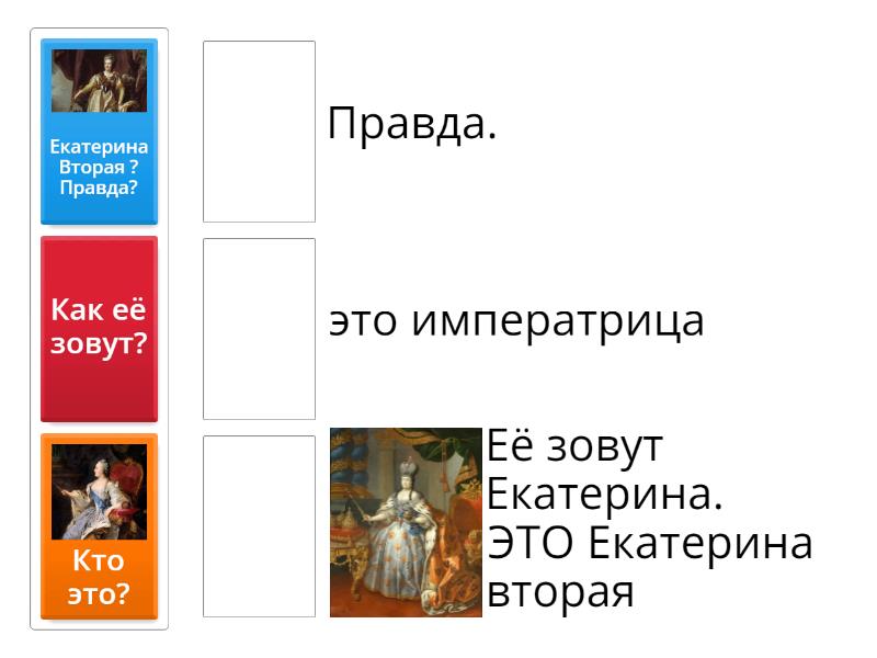 Кто это? - это императрица, Как её зовут? - Её зовут Екатерина. ЭТО Екатерина вторая, Екатерина Вторая ? Правда? - Правда.,
