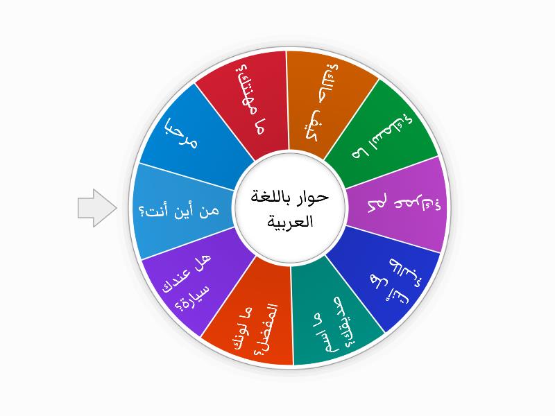 1) مرحبا  2) ما مهنتك؟ 3) كيف حالك؟ 4) ما اسمك؟ 5) كم عمرك؟ 6) هل أنت طالب؟ 7) ما اسم صديقك؟ 8) ما لونك المفضل؟ 9) هل عندك سيارة؟ 10) من أين أنت؟