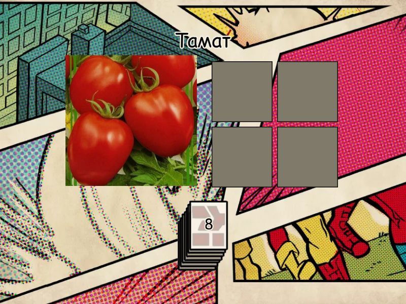 1) Тамат a) Ружовы b) Чорны c) Чырвоны d) Жоўты 2) Морква a) Ружовы b) Чорны c) Аранжавы d) Жоўты 3) Радыска a) Ружовы b) Чорны c) Аранжавы d) Жоўты 4) Гарбуз a) Ружовы b) Чорны c) Блакітны d) Аранжавы 5) Якога колеру масліны? a) Ружовы b) Чорны c) Блакітны d) Аранжавы 6) Якога колеру алей? a) Зялёны b) Жоўты c) Блакітны d) Чырвоны 7) Якога колеру каўбаса? a) Ружовы b) Чорны c) Аранжавы d) Жоўты