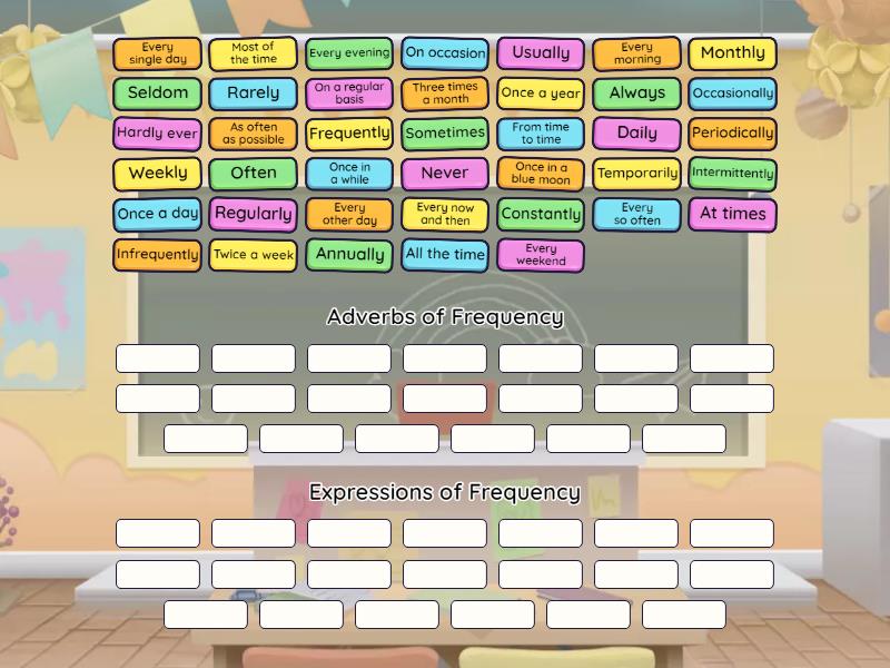 Adverbs of Frequency: Always, Usually, Frequently, Often, Sometimes, Occasionally, Seldom, Rarely, Hardly ever, Never, Constantly, Regularly, Periodically, Daily, Weekly, Monthly, Annually, Infrequently, Intermittently, Temporarily, Expressions of Frequency: Once in a while, Every now and then, From time to time, Every so often, At times, On occasion, Once a day, Twice a week, Three times a month, Every morning, Every evening, Every weekend, All the time, Most of the time, Every other day, Once in a blue moon, On a regular basis, As often as possible, Once a year, Every single day,