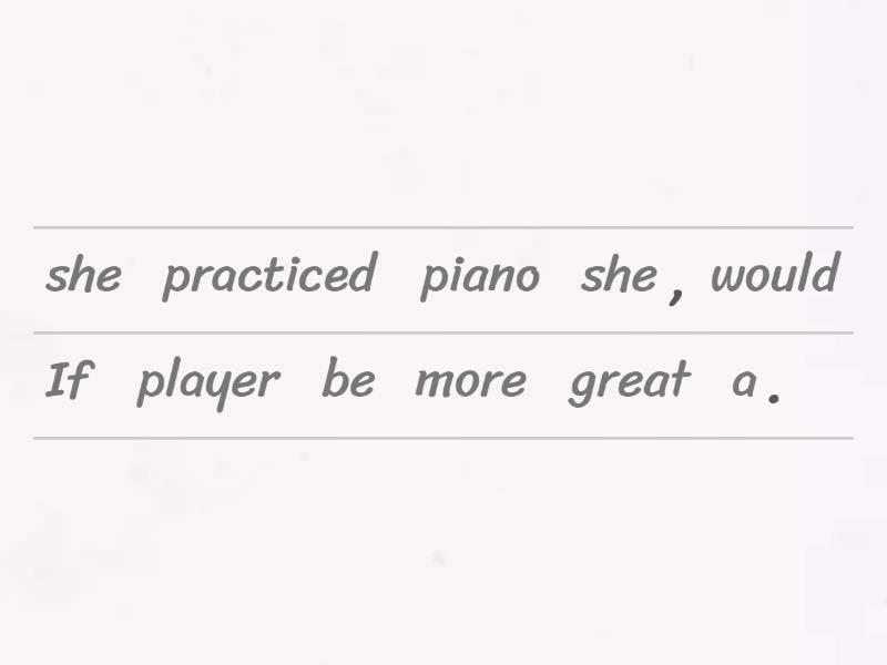 If she practiced more, she would be a great piano player., If we moved to another country, we would have a better quality of life., If you took the train, you would get here more quickly., If he didn't go to bed so late, he would feel less tired., If the TV program had another presenter, it wouldn't be so popular., If I lost my flight, I would be very upset.,