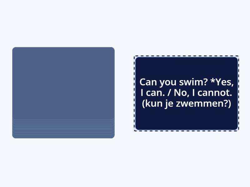 What's your name? *My name is... (wat is je naam?), How old are you? *I'm ..... years old. (hoe oud ben je?), Where are you from? *I'm from...... (waar kom je vandaan?), Where do you live? *I live in......... (waar woon je?), Wat is your hobby? *My hobby is.... (wat is je hobby?), Who are you? *I'm.... (wie ben jij?), Are you married? *No, I'm not married. / Yes, I'm married. (ben je getrouwd?), How many brothers do you have? *I have............brothers. (hoeveel broers heb je?), How many sisters do you have? *I have......... sisters. (hoeveel zussen heb je?), Do you work? *yes/no (werk je?) , Do you live with your parents? *Yes, I do. / No, I don't. (Woon je met je ouders?) , Do you like chocolate? *Yes, I do. / No, I don't. (hou je van chocola?) , Do you smoke? *Yes I do. / No, I don't. (rook je?) , Can you swim? *Yes, I can. / No, I cannot. (kun je zwemmen?) , Can you ride a bike? *Yes, I can. / No, I cannot. (kun je fietsen?) .