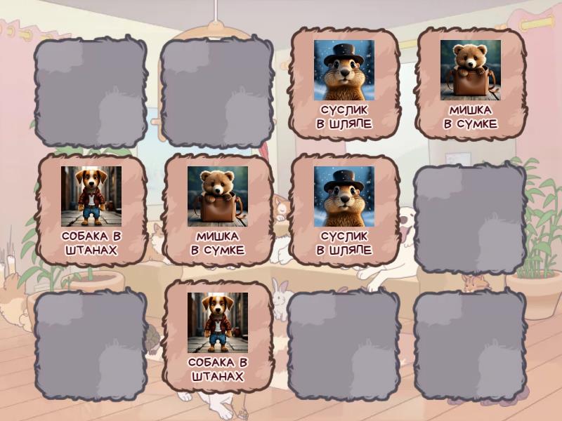 МИШКА В СУМКЕ, СУСЛИК В ШЛЯПЕ, СОБАКА В ШТАНАХ, АИСТ В ШУБЕ, СОВА В ДУШЕ, КОШКА В САПОГАХ,