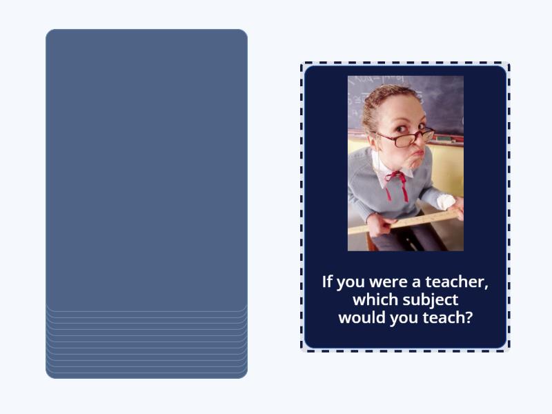 If a stranger on the street asked for some money, how much would you give?, If you were a teacher, which subject would you teach?, If you could live wherever you wanted, where would you live?, If you were a famous actor, which one would you be?, If you were in your room right now listening to music, what kind of music would you be listening to?, If you were on holiday in Europe right now, which country would you be in?, If you had to choose only one of the following, would you be extremely rich, good- looking, intelligent or strong?, If all of your clothes had to be the same colour, what colour would they be?, If you went back in time, what year would you go to?, If you had a special power, what would you be able to do?, If you could have any job, what job would you like to have?, If you could only eat one food for the rest of your life, what would you choose?, If you changed your name, what name would you choose?.