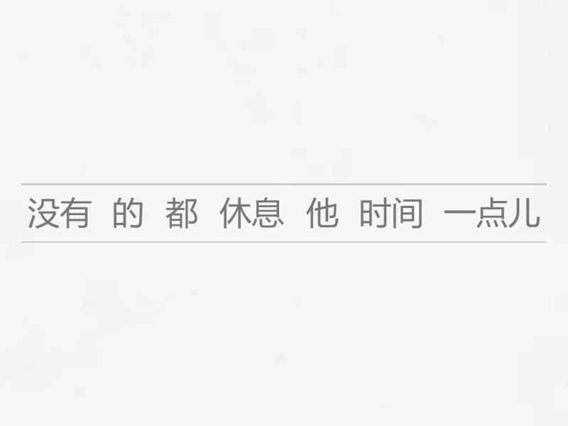 他 一点儿 休息 的 时间 都 没有, 从 早上 到 现在 他 一点儿 水 都 没喝, 这 些 书 我 一本 都 不 想看, 在 这 里 他 一个 朋友 都 没有, 那 些 以前 的 事情 他 一件 都 不记得了, 他 是 昨天 到 的 伦敦, 他 是 坐 火车 去 的伦敦, 他 是 在 伦敦 学 的 建筑学, 他 是 为了 学 建筑学 才 去 伦敦 的, 是 他 的 高中 同学 去 车站 接 的 她, 我 父母 上 个星期 就 回 家乡 去了, 她 觉得 你 明年 还 会 回 咱们 公司 来 吗?, 外面 味道 不 太 好, 你 快 进 屋子 去, 我 住 在 三 层, 你 能不能 上楼 来?, 这么高, 你 是不是 有点儿 害怕 ?要 我 帮 你 下 去 吗?, 最 近快 要忙死了, 连 上厕所 的 时间 都 快没有了, 她 连 博物馆 也 没 去 过,