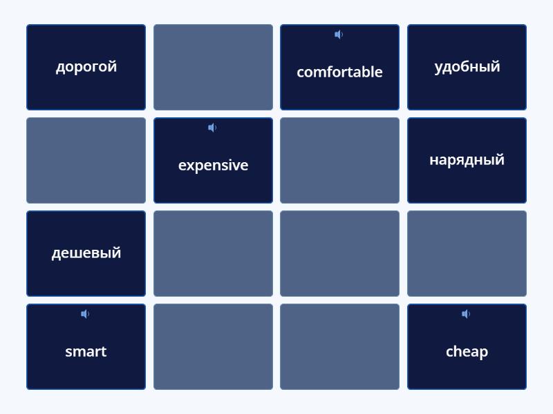 comfortable - удобный, smart - нарядный, cheap - дешевый, expensive - дорогой, baggy - мешковатый, tight - приталенный, casual - повседневный, old-fashioned - устаревший,