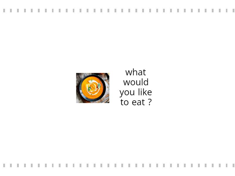 What would you like to eat ? , What would you like to eat ? , What would you like to eat?, What would you like to eat ?, what would like to eat ? , what would you like to eat ?, what would you like to eat ?.