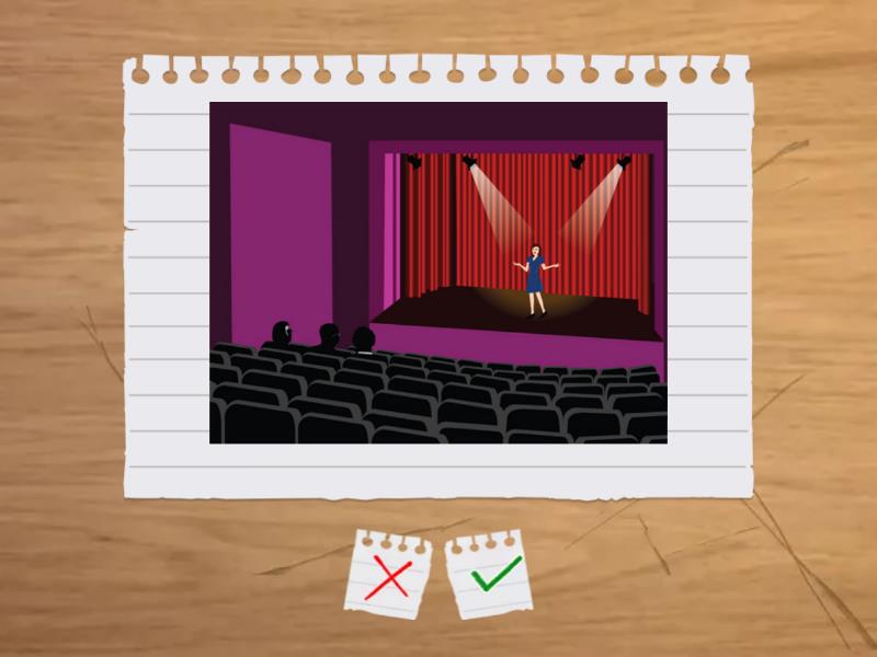 scene, play the part, audience, orchestra, learn the lines, audition, lyrics, rehearsal,